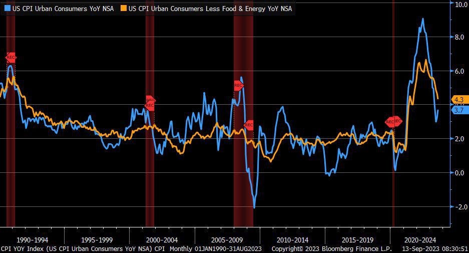 L’inflazione statunitense headline (complessiva) esce al 3,7% y/y contro aspettative del 3,6% (3,2%). L’inflazione core 4,3% come da aspettative (dato precedente 4,7%).